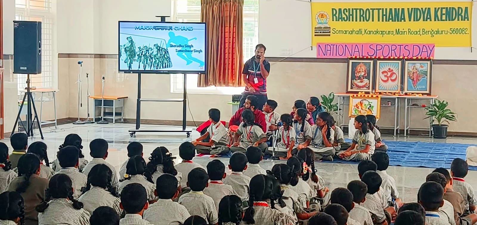 Aug 29: National Sports Day was celebrated in Rashtrotthana Schools in commemoration of hockey legend, Major Dhyan Chand’s birth anniversary. The first day was celebrated in 2012.